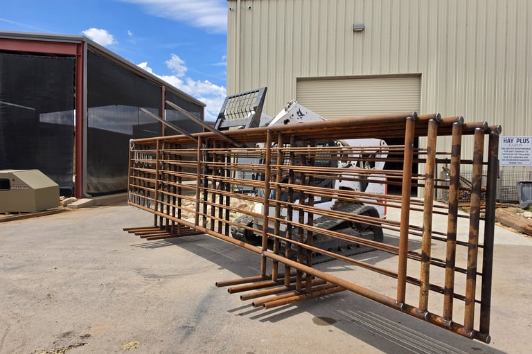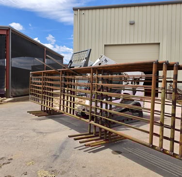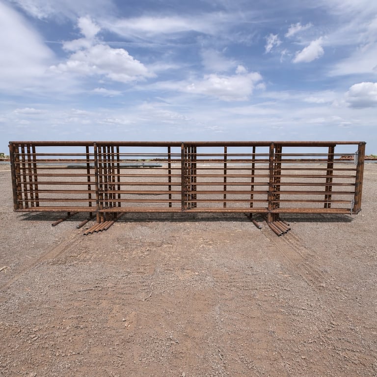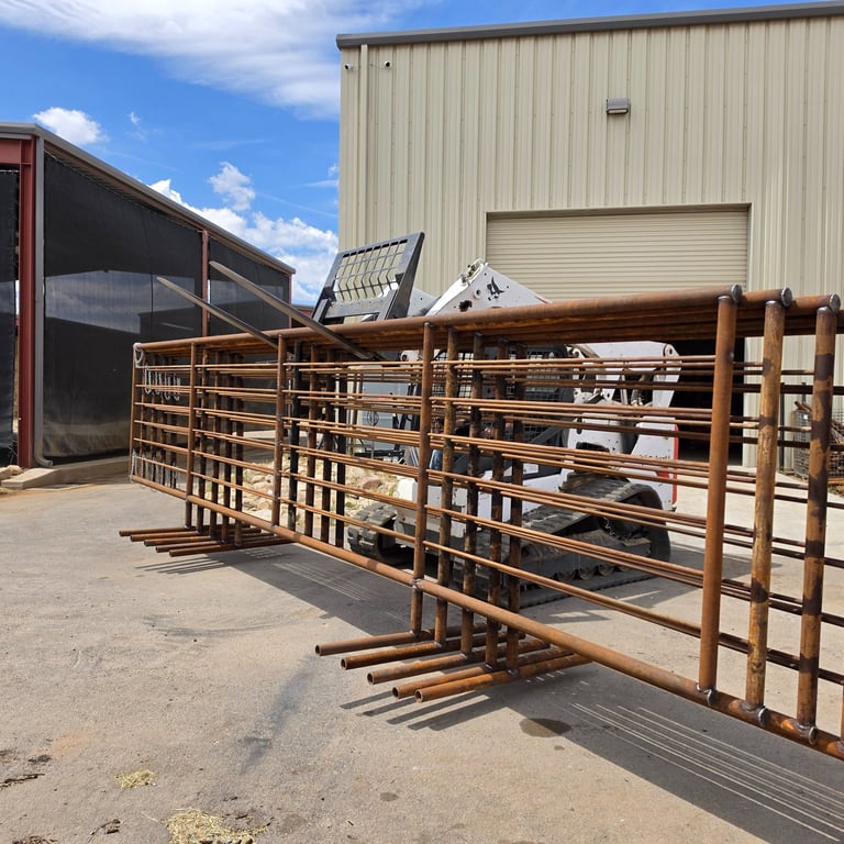 These aren't the panels you find stacked at a big box store. Our freestanding cattle panels are built from 2⅜ oilfield drill pipe — the same material that handles extreme downhole pressure. If you need a panel that holds up to working cattle day after day, year after year, this is what you've been looking for.